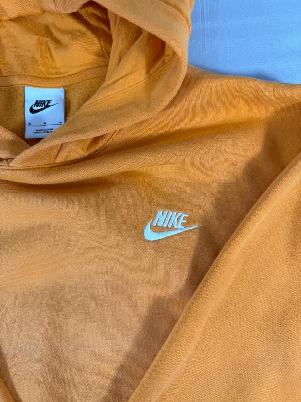 Nike Men’s Orange Pullover Hoodie Fleece Lined Sweatshirt Size M