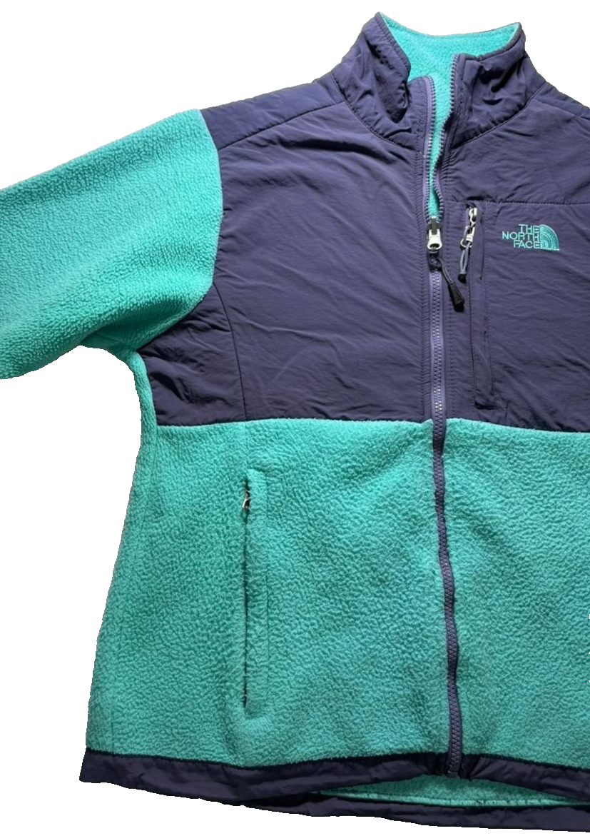 North Face Jacket For Women - Fleece Polartec Aqua Blue - Gray Zip - Size Xl