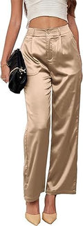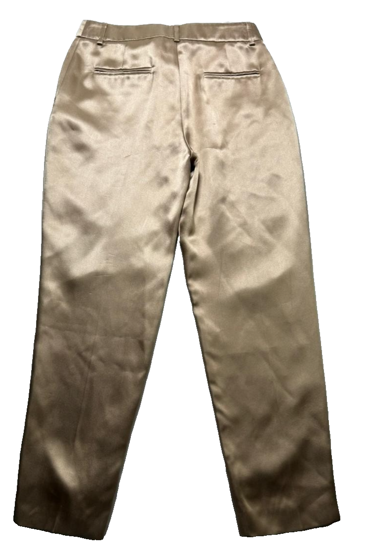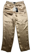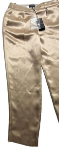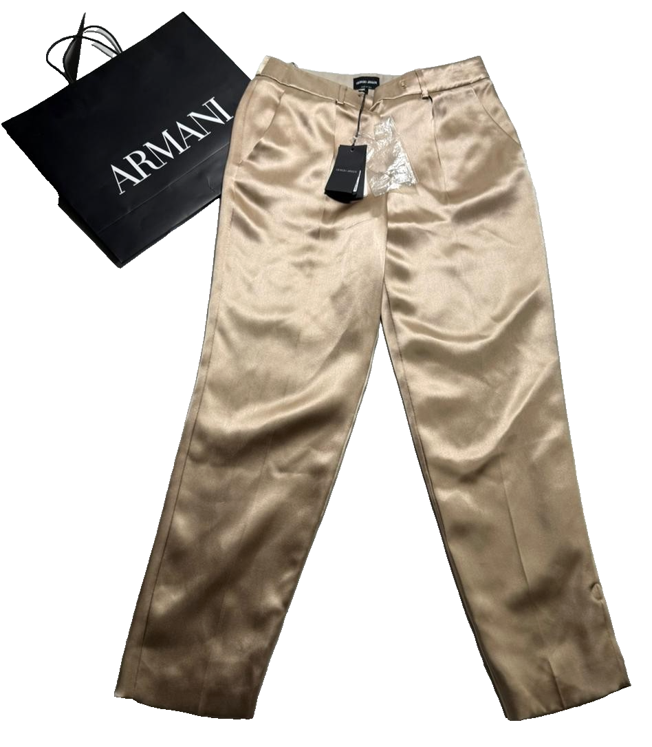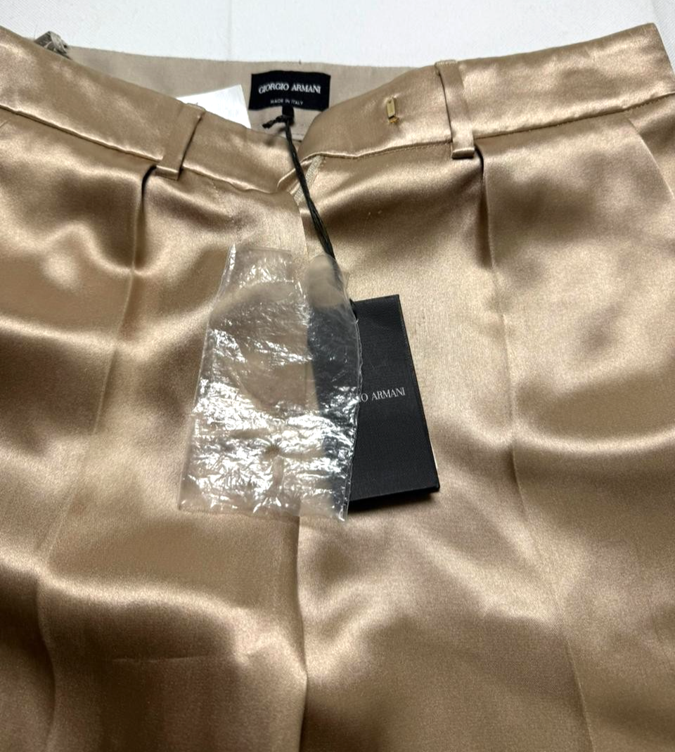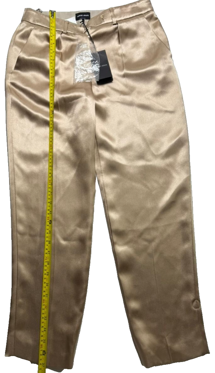 Nwt Giorgio Armani Silk Satin High-Waist Straight Leg Trousers Pants Beige Gold