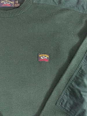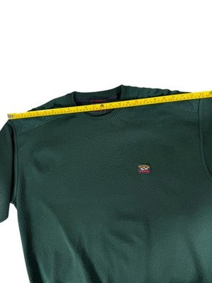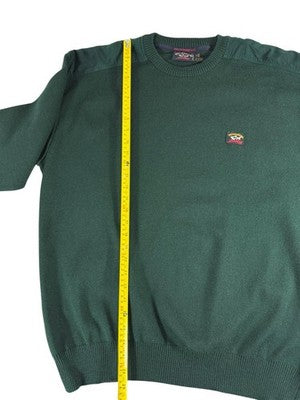 Paul & Shark XL Dark Green Wool Yachting Sweater Crewneck Shark Logo Patches