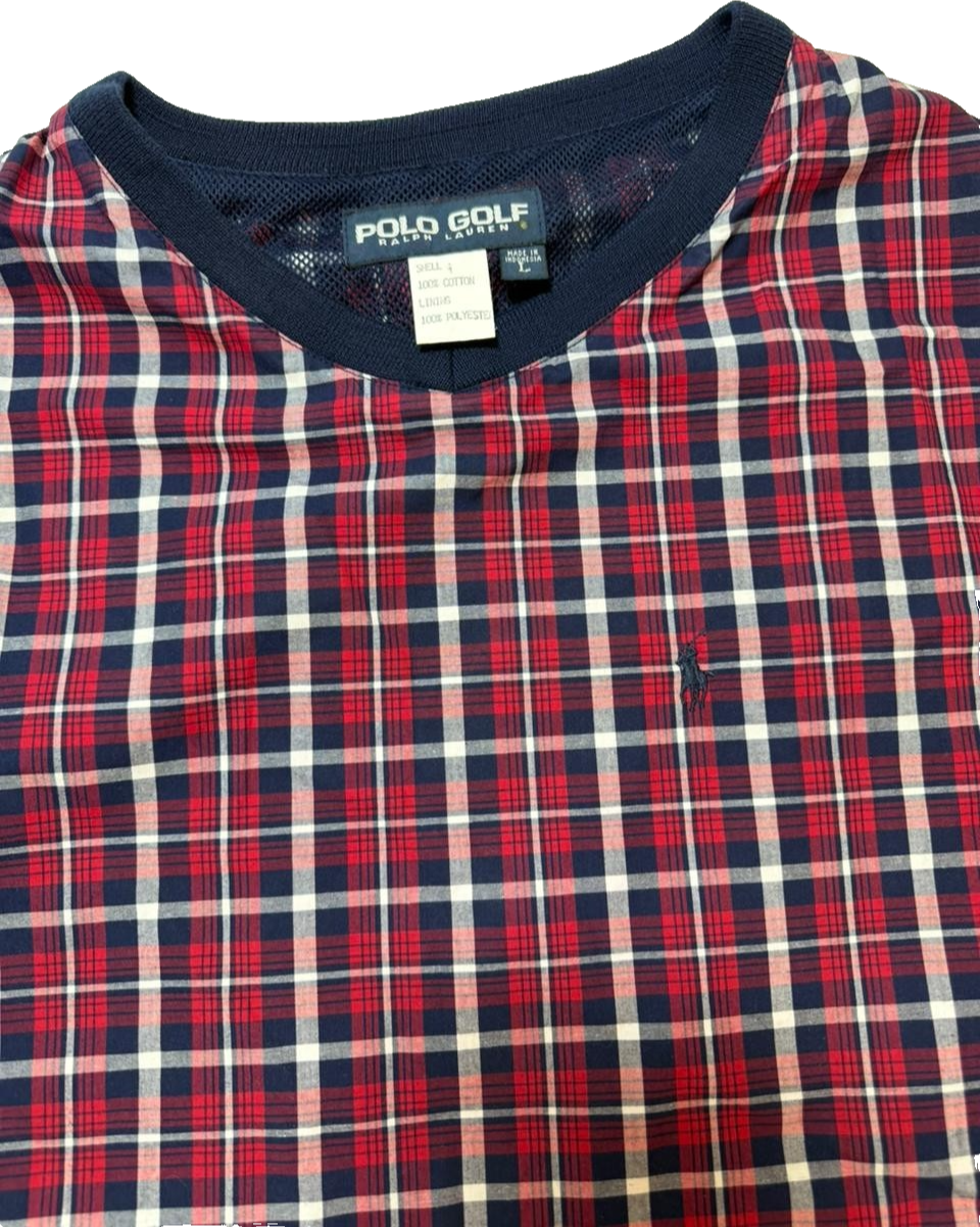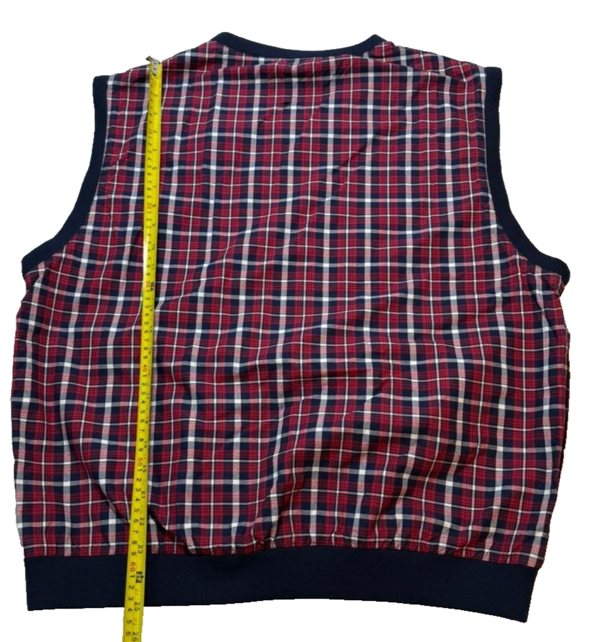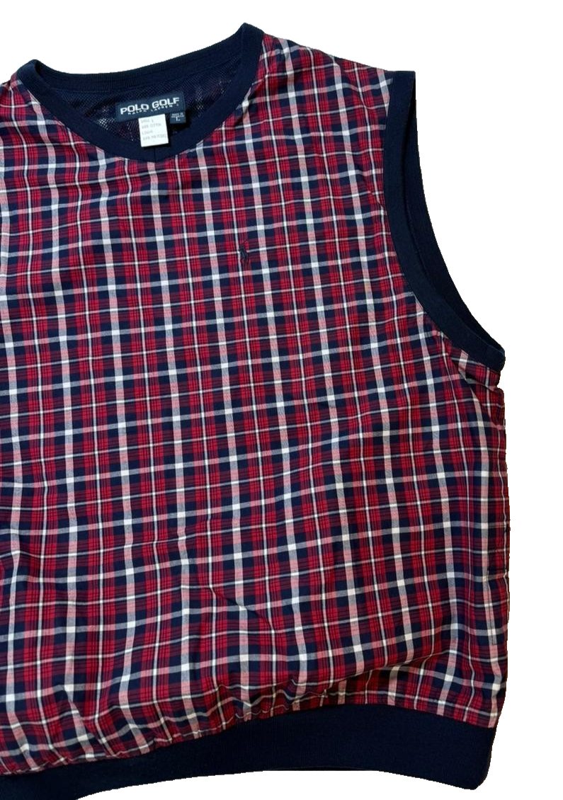 Polo Golf Ralph Lauren Men’s Plaid Sleeveless Vest Red Navy Check L