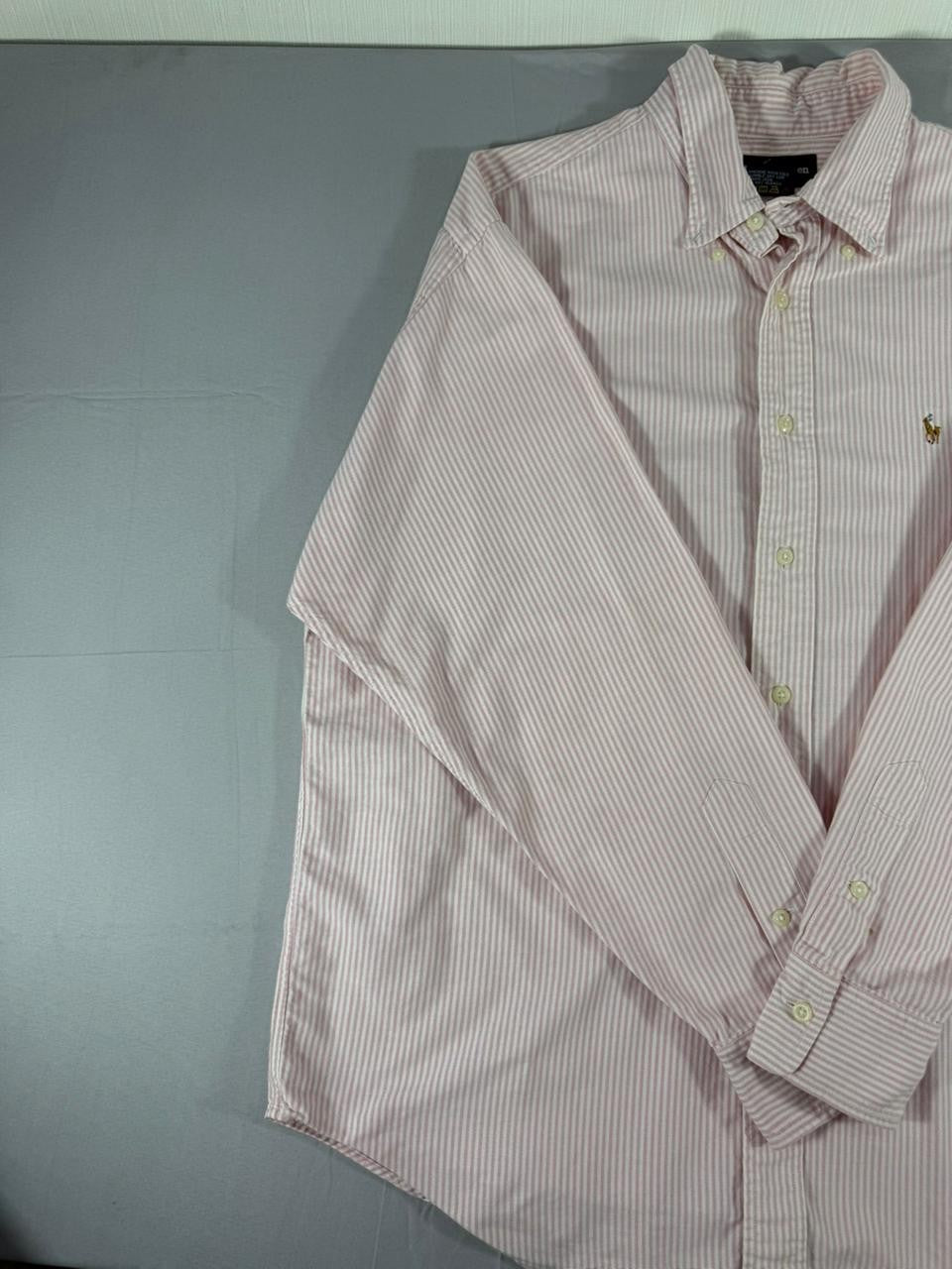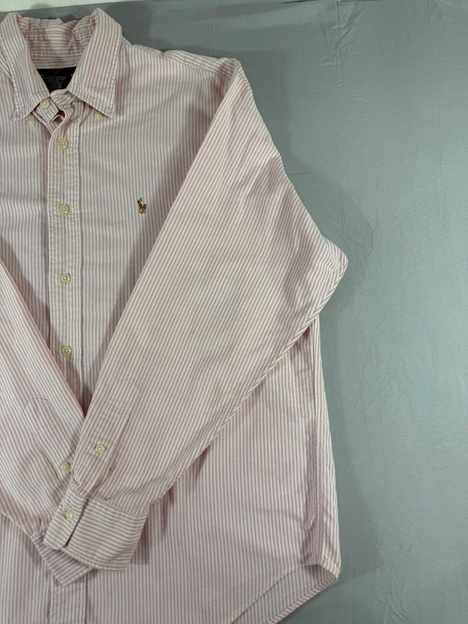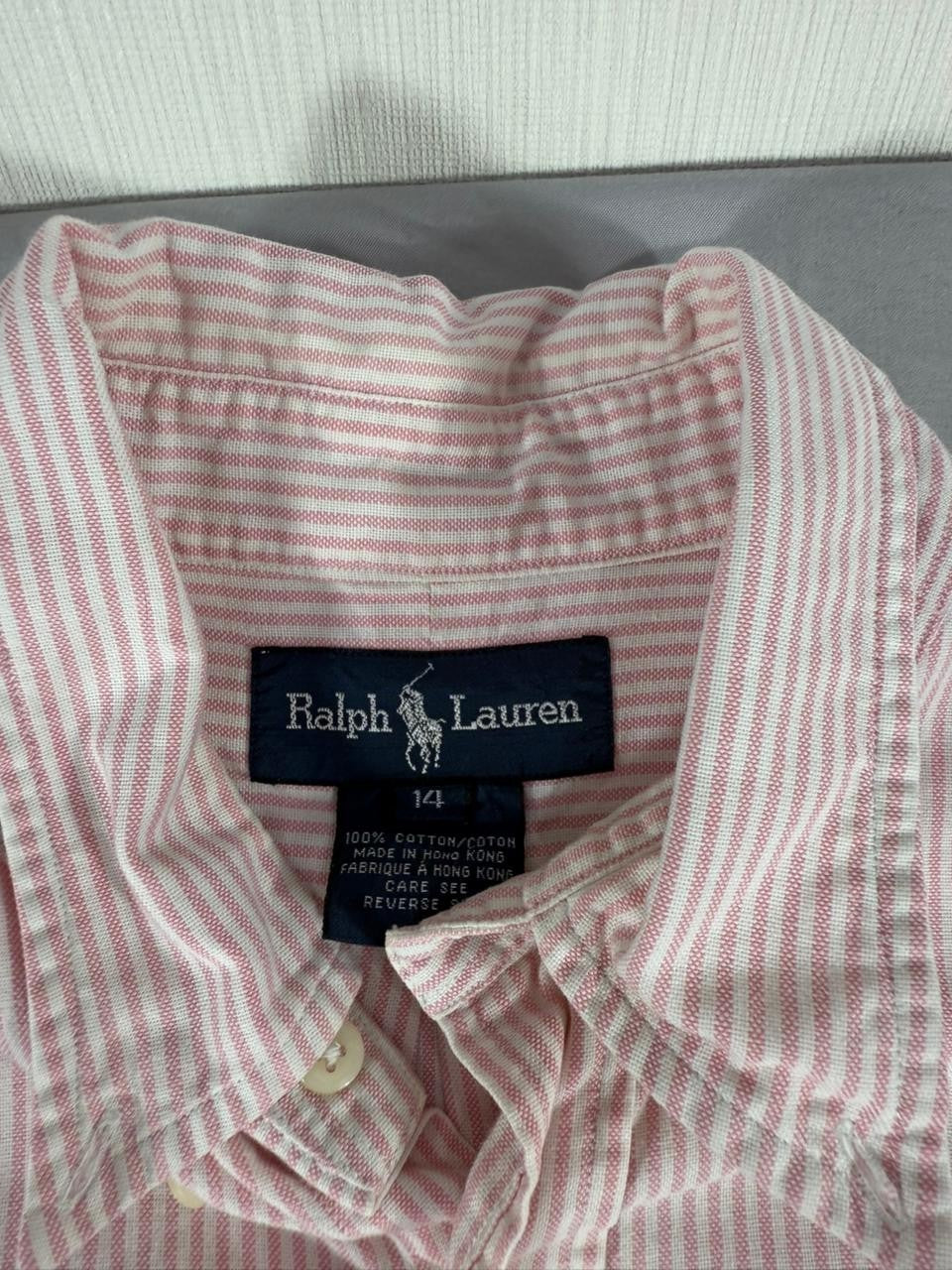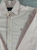 Ralph Lauren Boys 14 Pink White Striped Button Down Shirt Long Sleeve