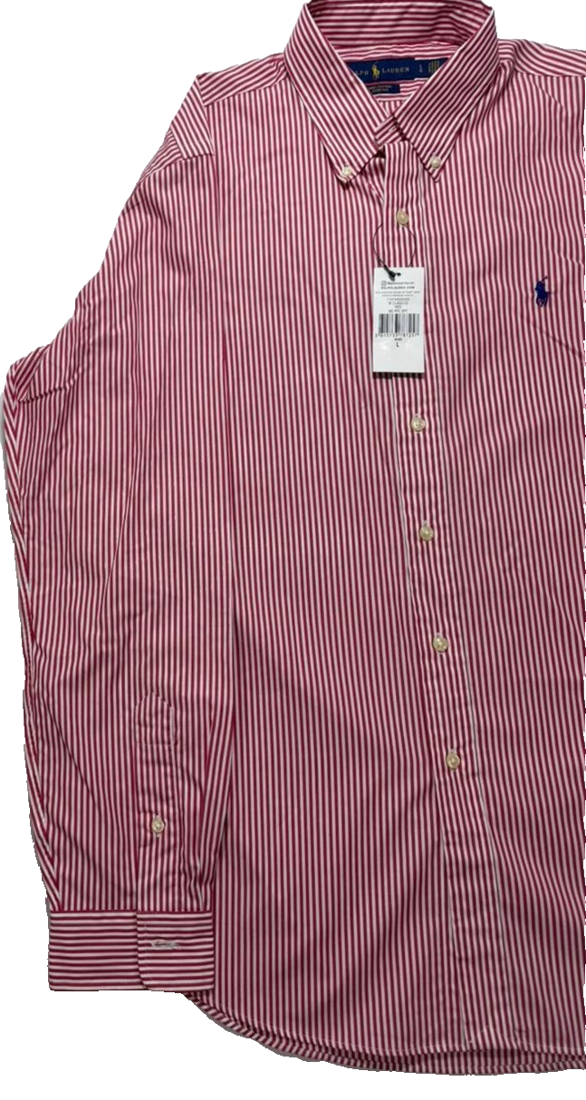 Ralph Lauren Men�S Shirt Size L Red White Stripe Button Down Long Sleeve Classic