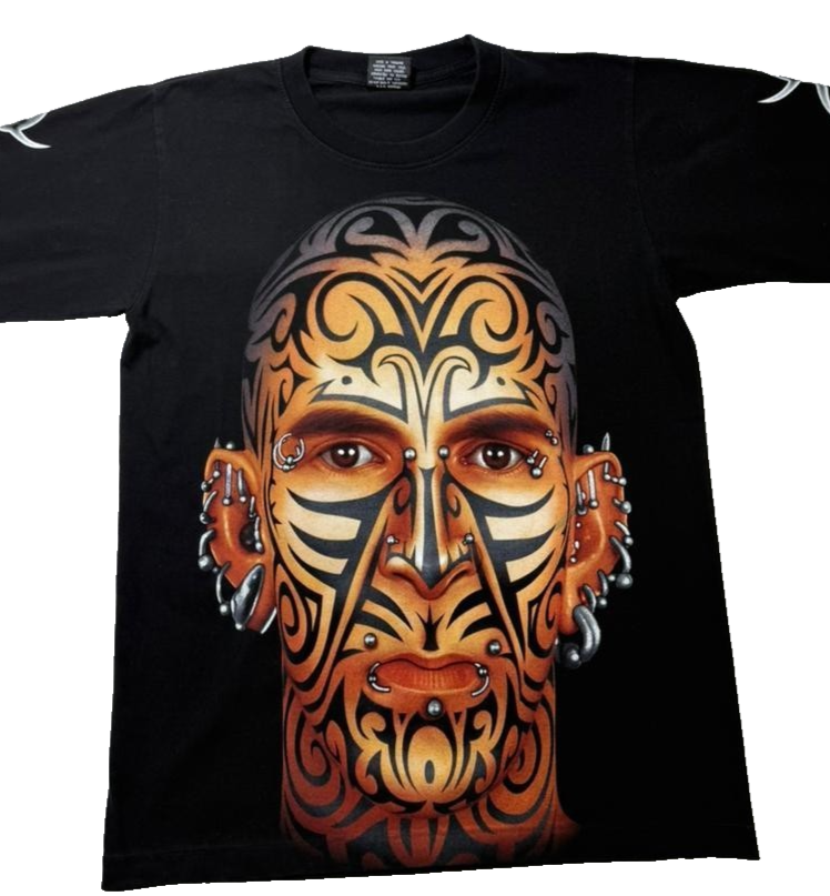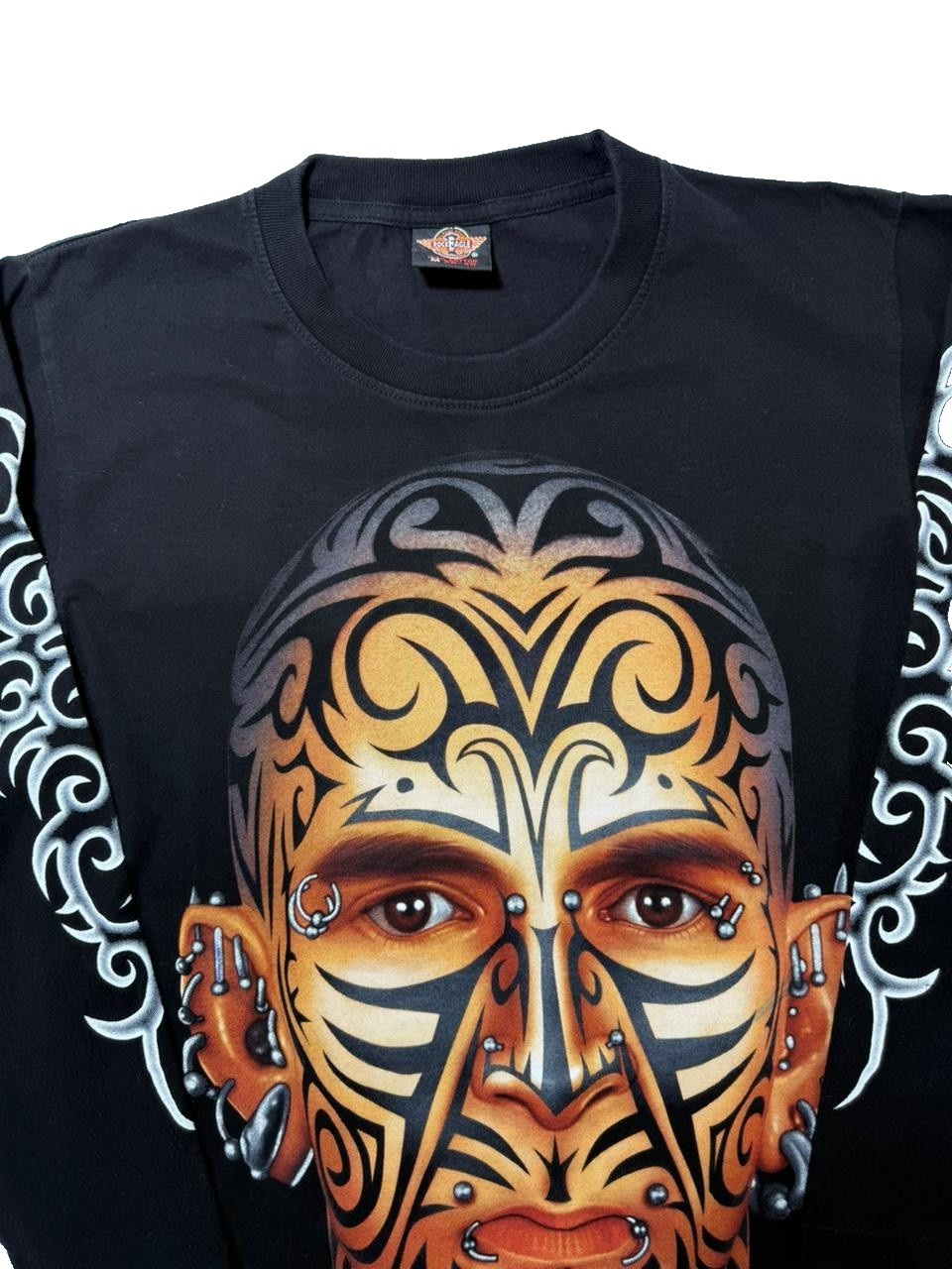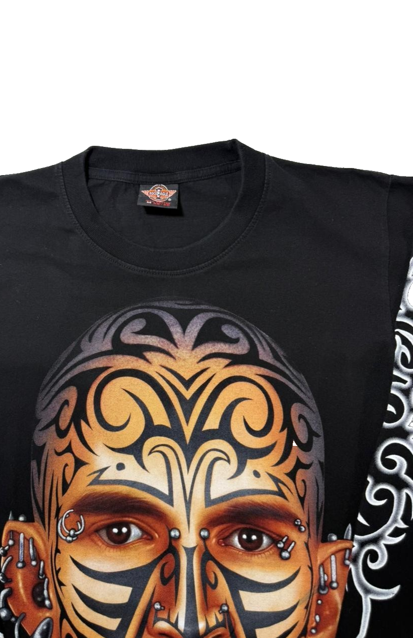 Rockeagle Single Stitch Punk Tribal Tattoo Piercing Face T-Shirt |Size:M