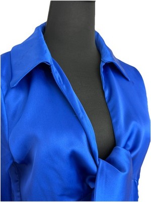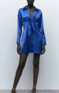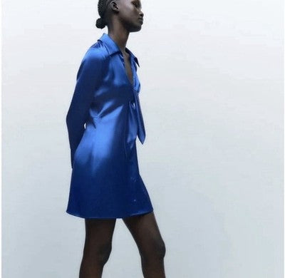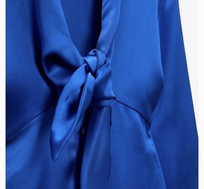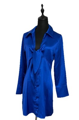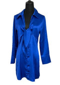 Stunning Cobalt Blue Zara Satin Tie Front Shirt Dress Size Small