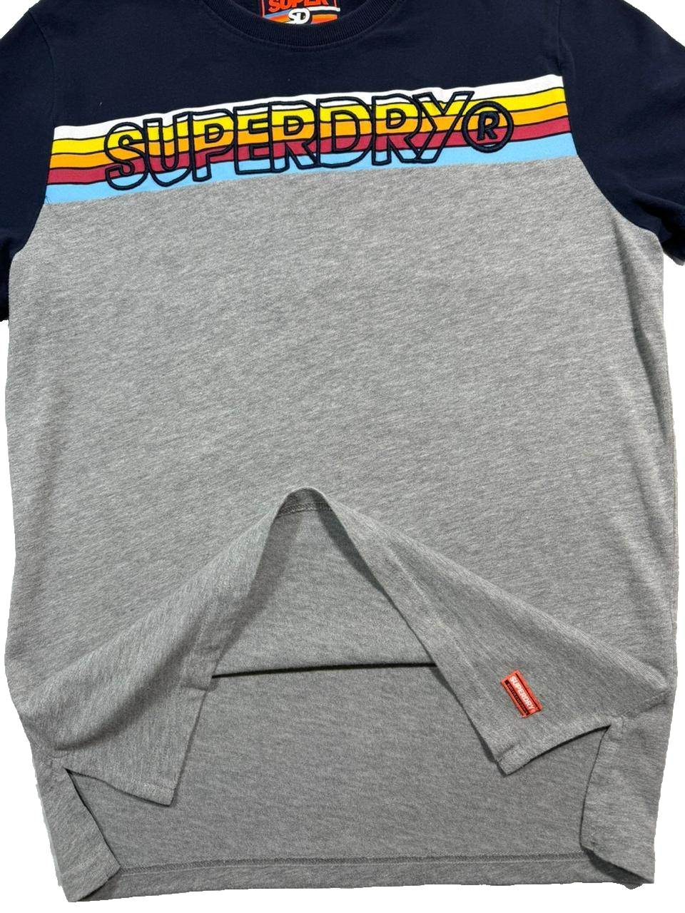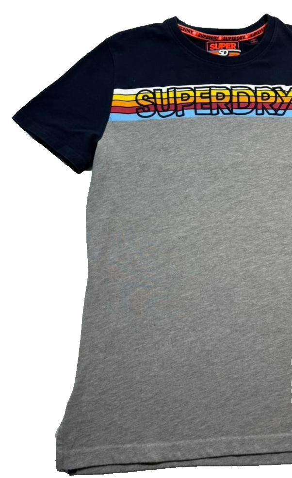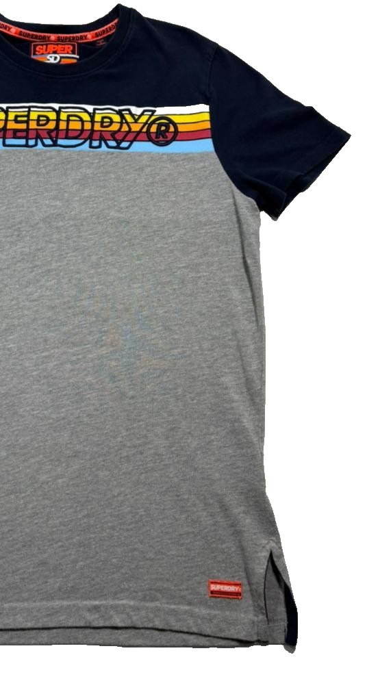 Superdry Men'S Navy Gray Colorblock T-Shirt, Size L, Logo Casual Cotton Tee
