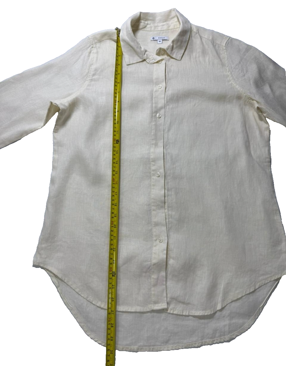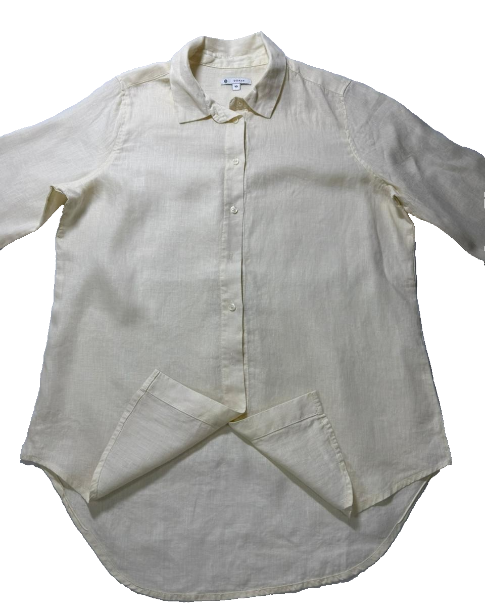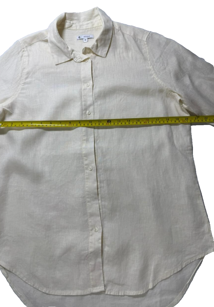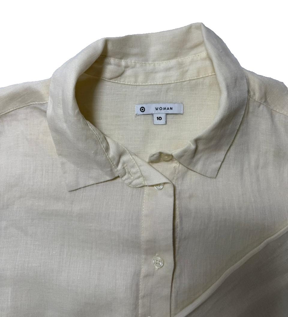 Target Woman Linen Button Up Shirt 10 Pastel Yellow Relaxed High Low Hem