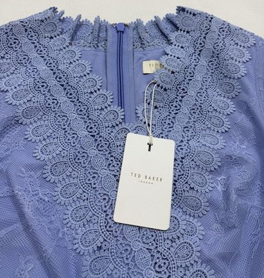 Ted Baker Pleated Sonnyi Faux Wrap Lavender Blue Lace Formal Dress