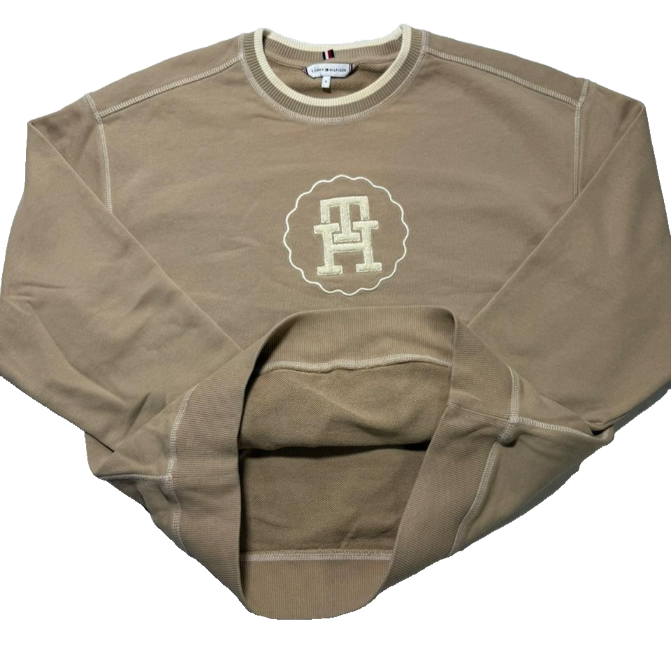 Tommy Hilfiger Beige Crewneck Sweatshirt S � Th Logo Embroidered