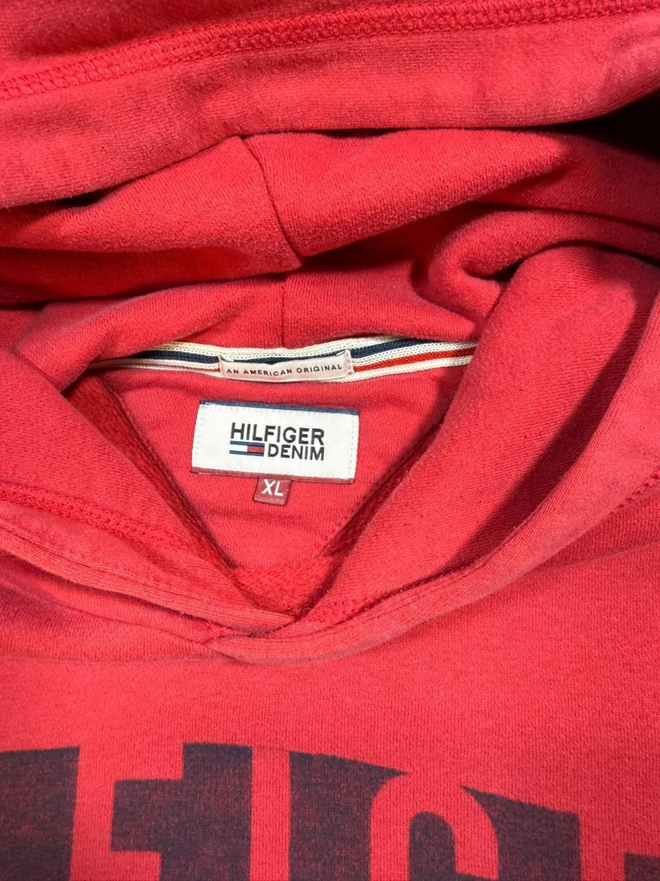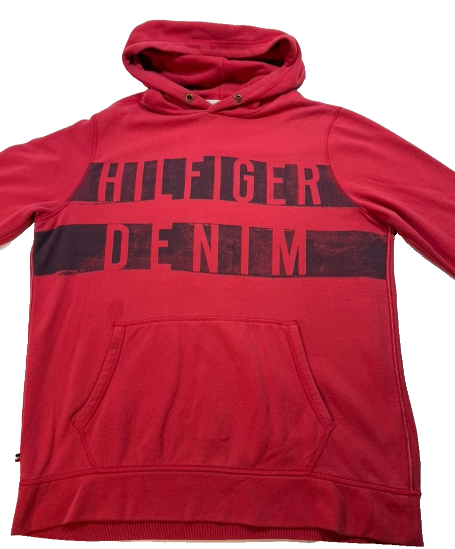 Tommy Hilfiger Denim Red Hoodie Sweatshirt Men�S Xl Pullover Logo Graphic