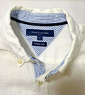 - Made from lightweight linen in white, featuring button closure and flag-themed design.