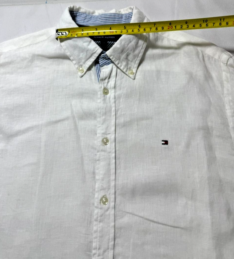 Tommy Hilfiger Follow Flag Detail Linen Relaxed Fit Shirt - Size M
