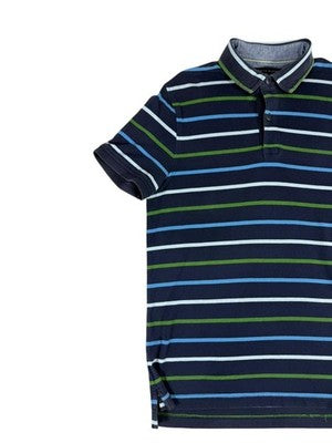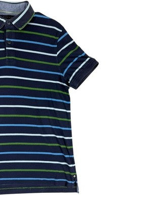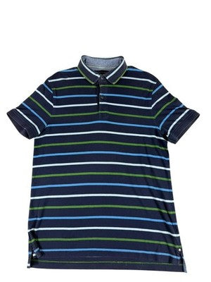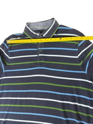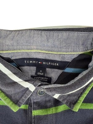 Tommy Hilfiger Men's M Navy Striped Polo Shirt Cotton Short Sleeve