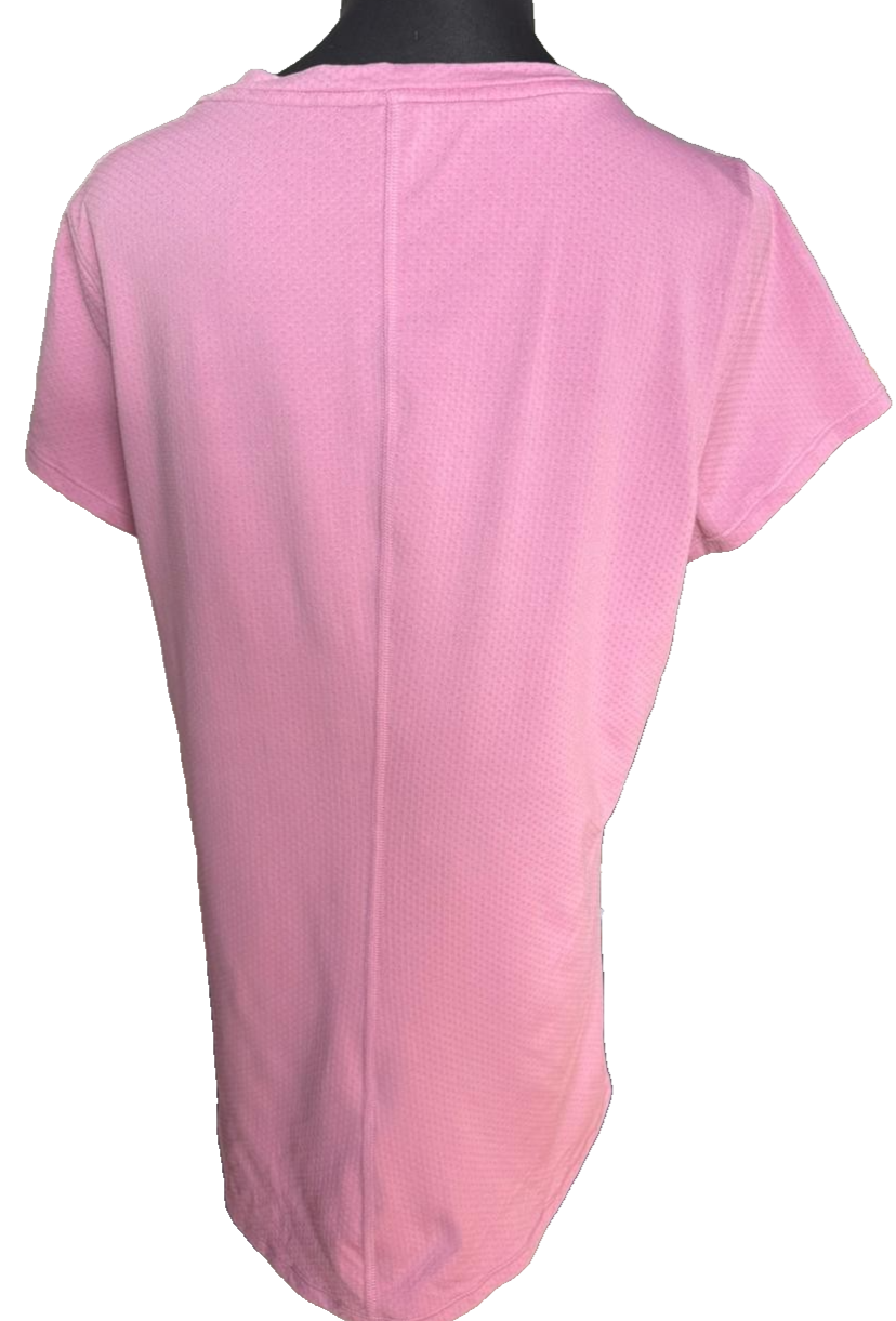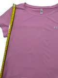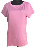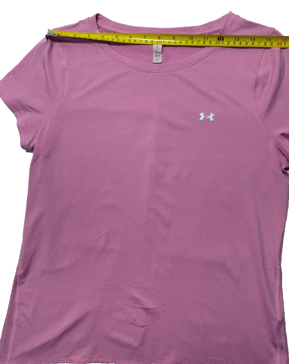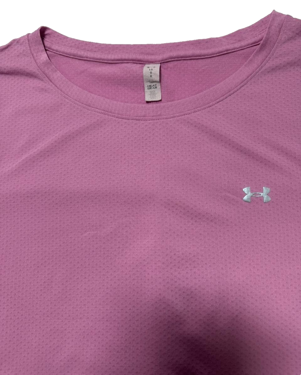 - Available in a regular fit size L with a solid pink color under the Under Armour HeatGear line.