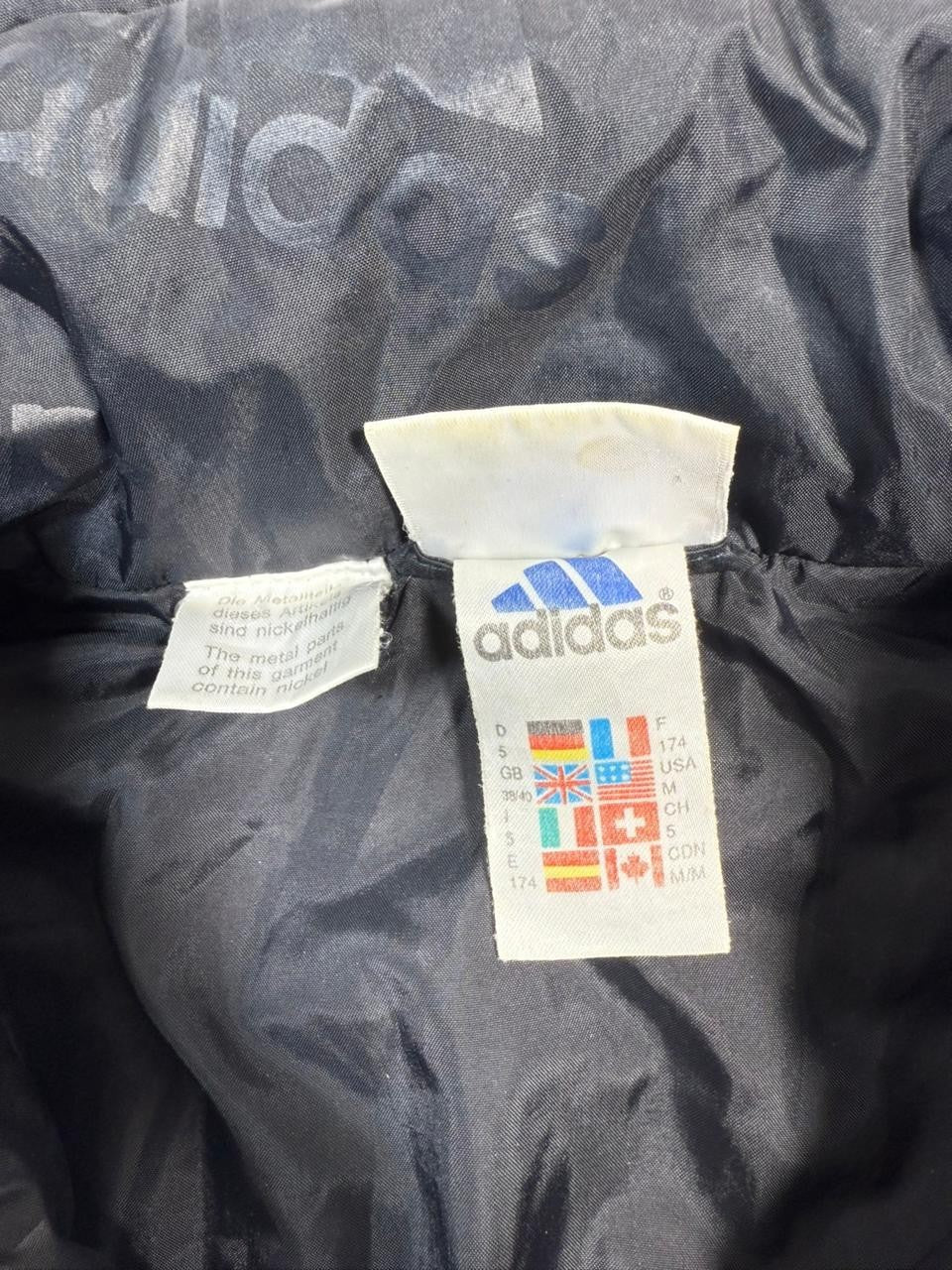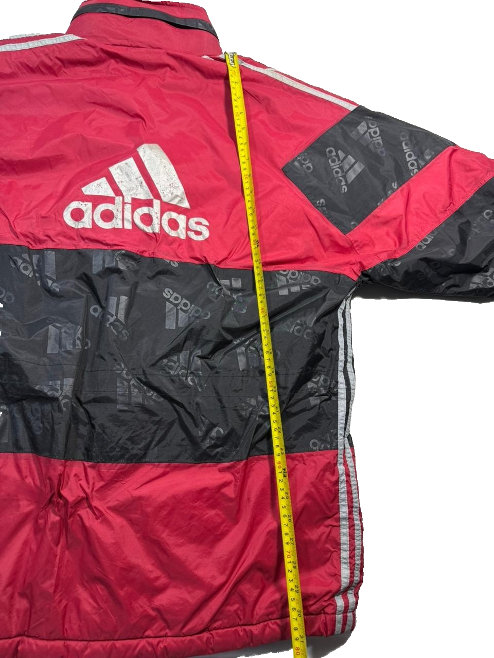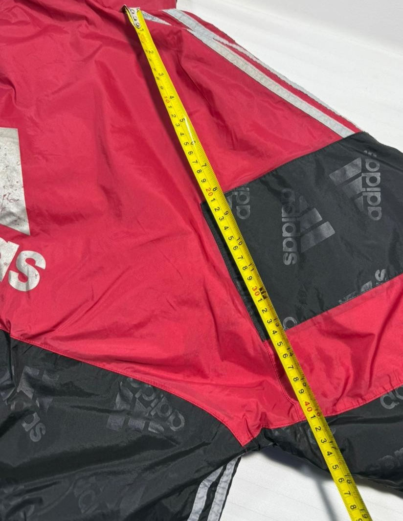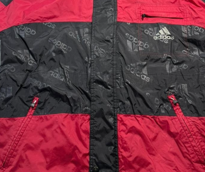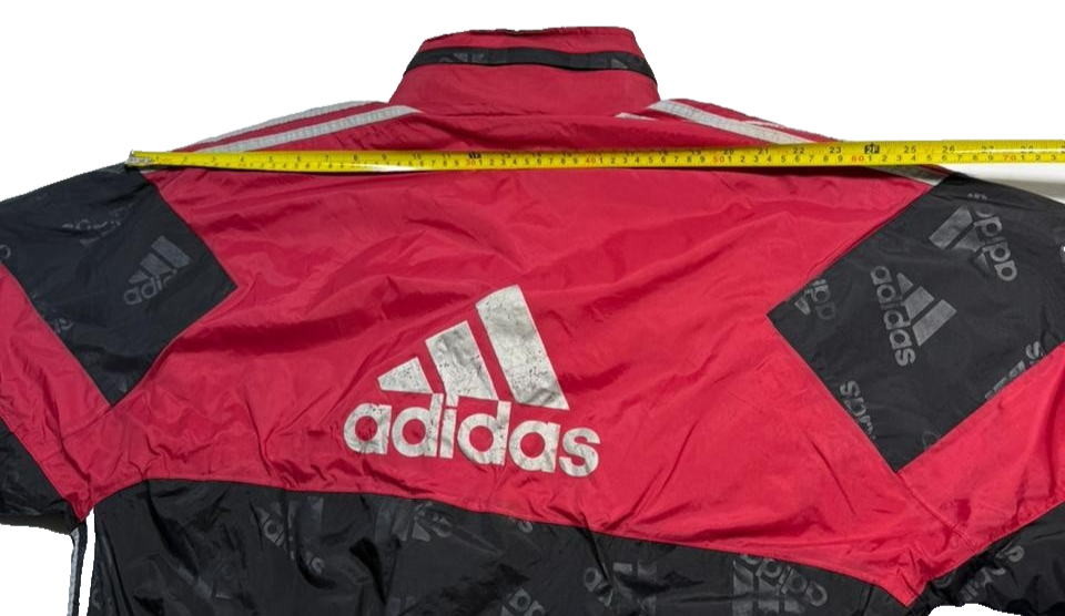 Vintage 90S Adidas Puffer Jacket Parka Coat Red Black All-Over Logo Print Size M