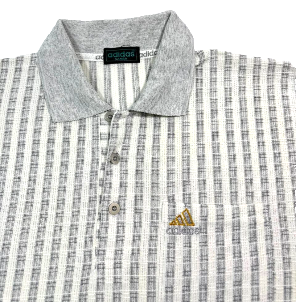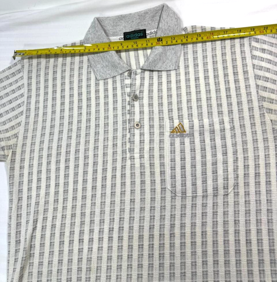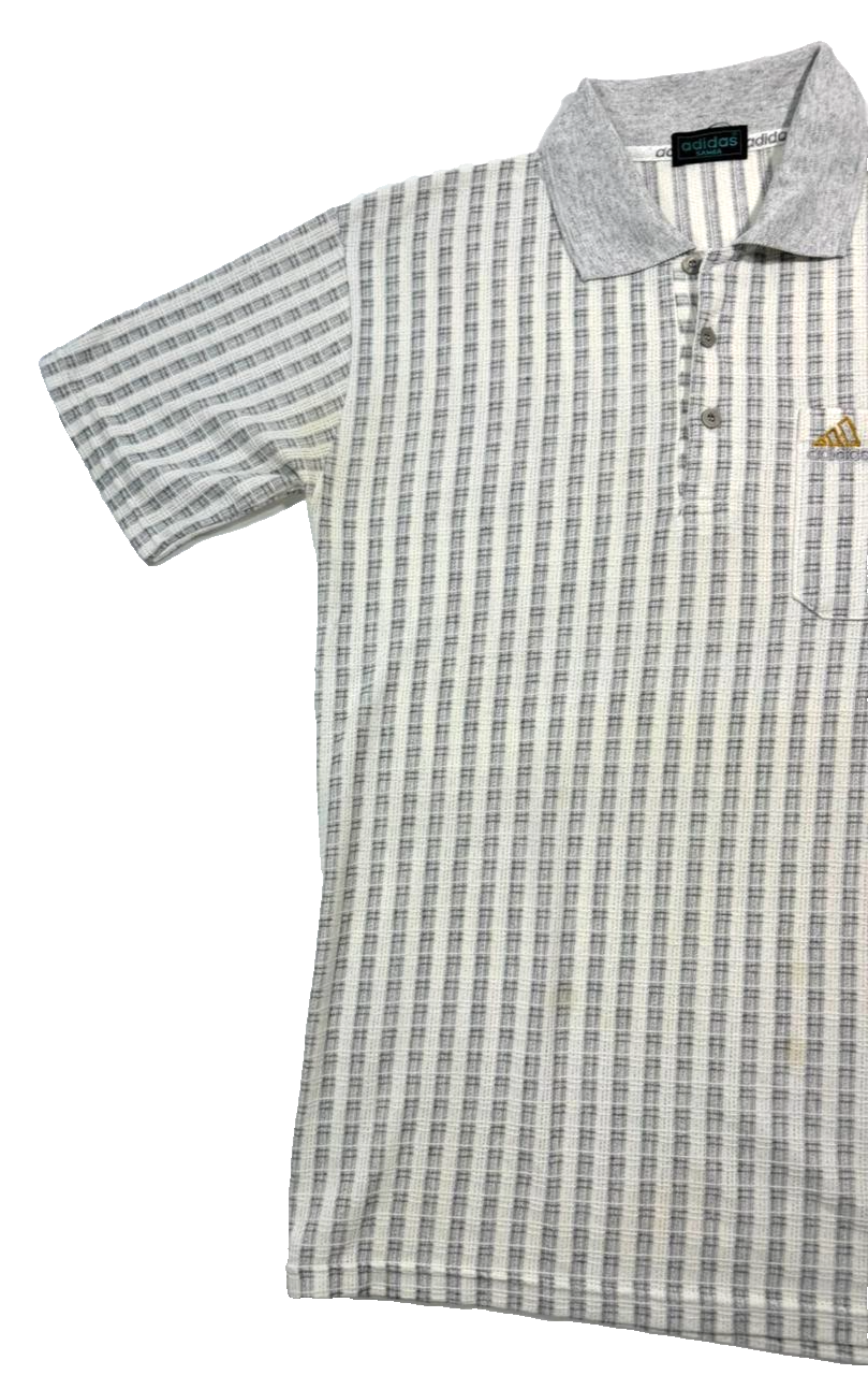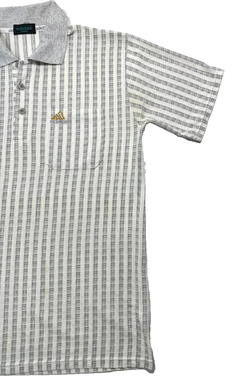 Vintage Gray And White Striped Adidas Polo Shirt - Size L