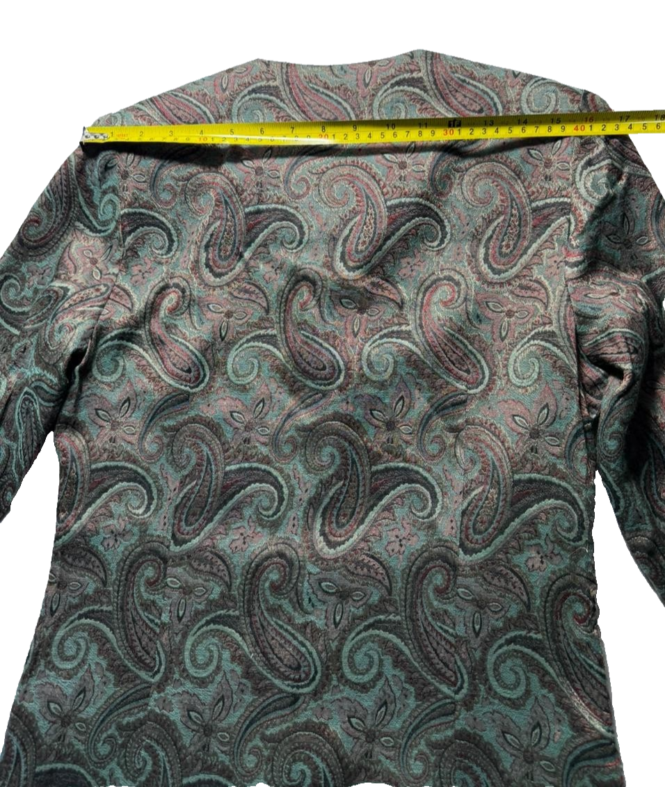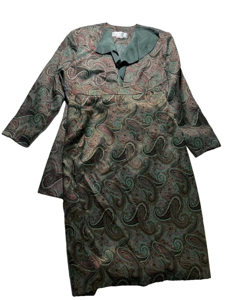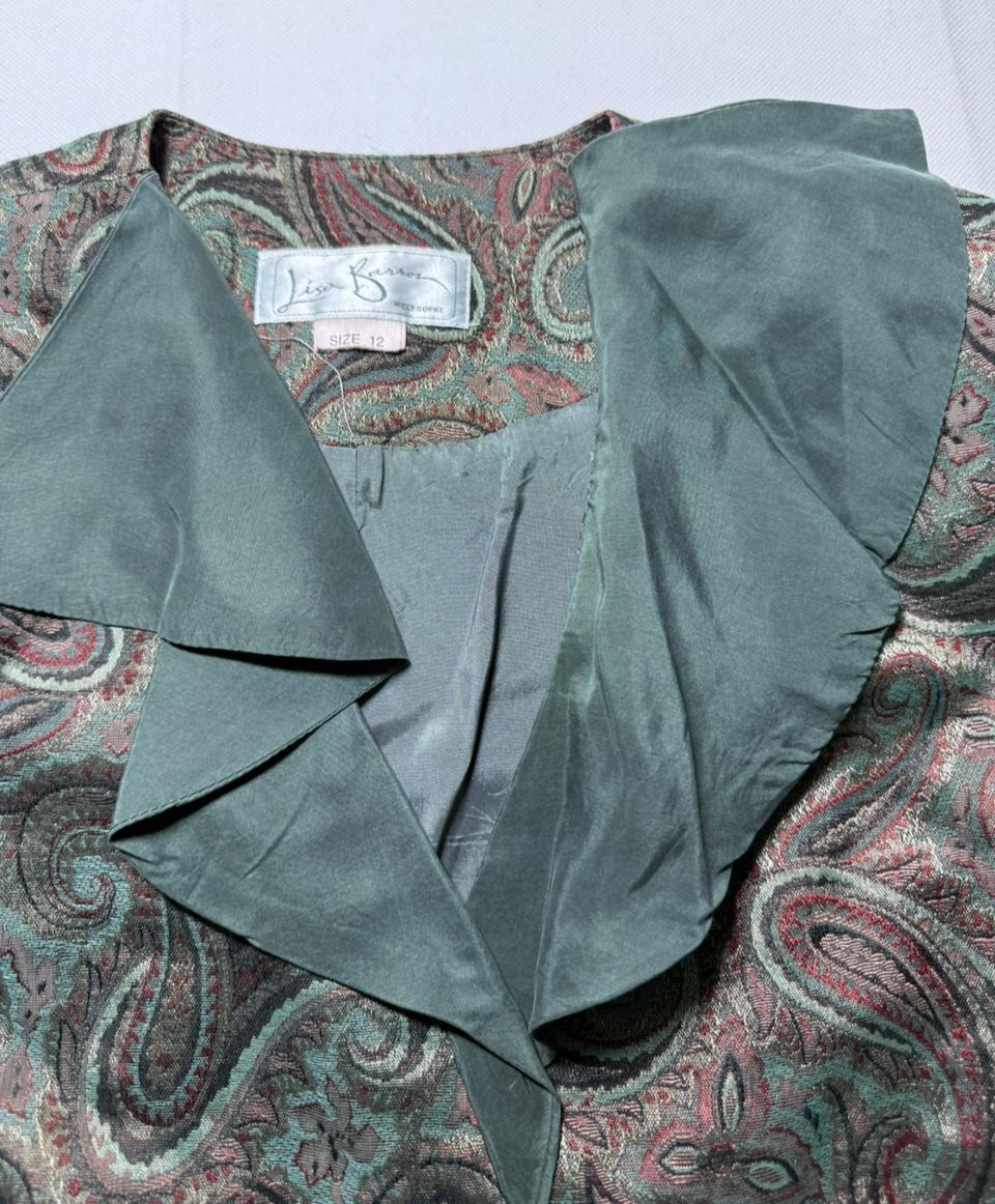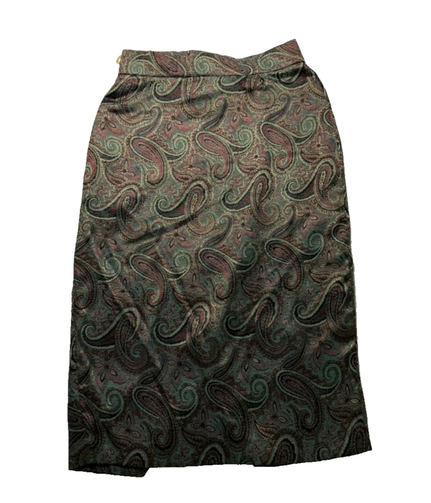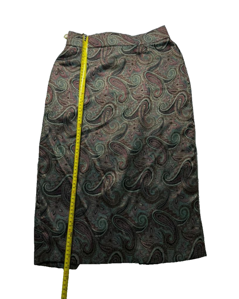 Vintage Paisley Printed Set Top And Skirt Green Brown Retro Women'S Size 12