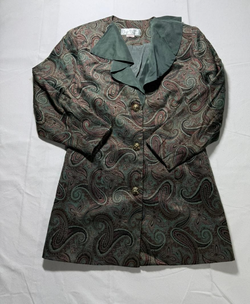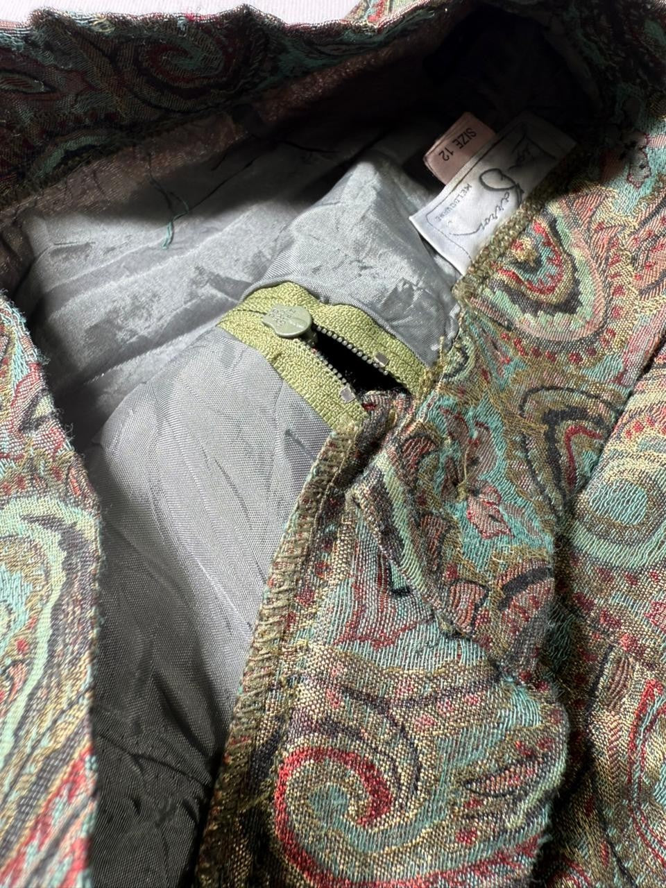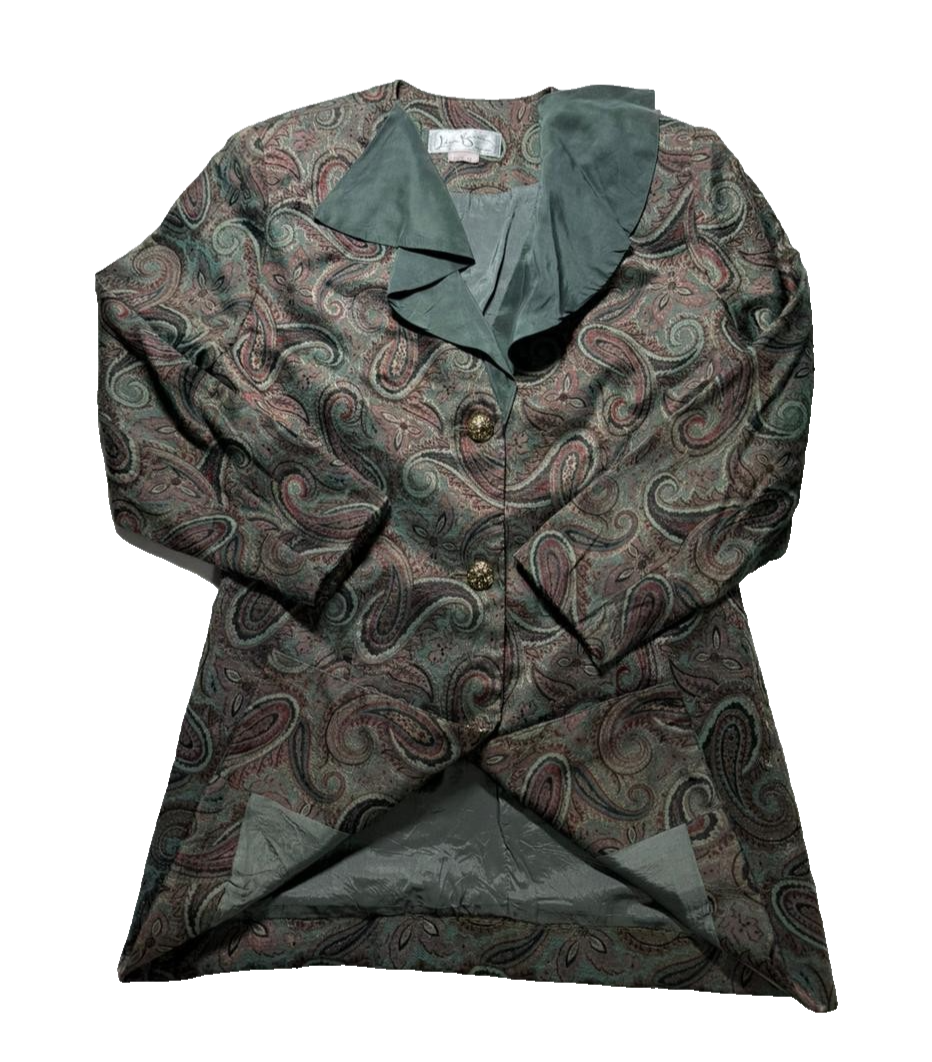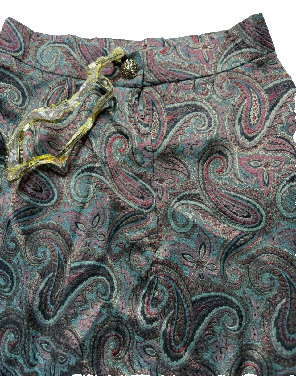 Vintage Paisley Printed Set Top And Skirt Green Brown Retro Women'S Size 12