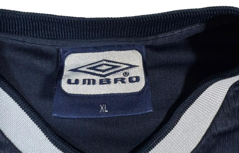Vintage Umbro Navy Blue Soccer Jersey Men�S Xl Short Sleeve V-Neck Training Top