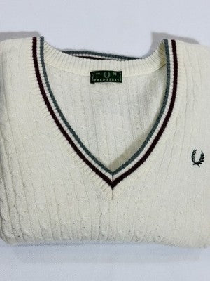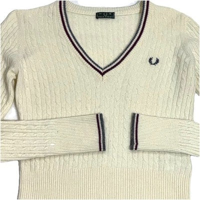 Vtg. Fred Perry Cable Knit Striped V-Neck Sweater Jumper Women�S Free Shipping