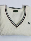 Vtg. Fred Perry Cable Knit Striped V-Neck Sweater Jumper Women�S Size Medium