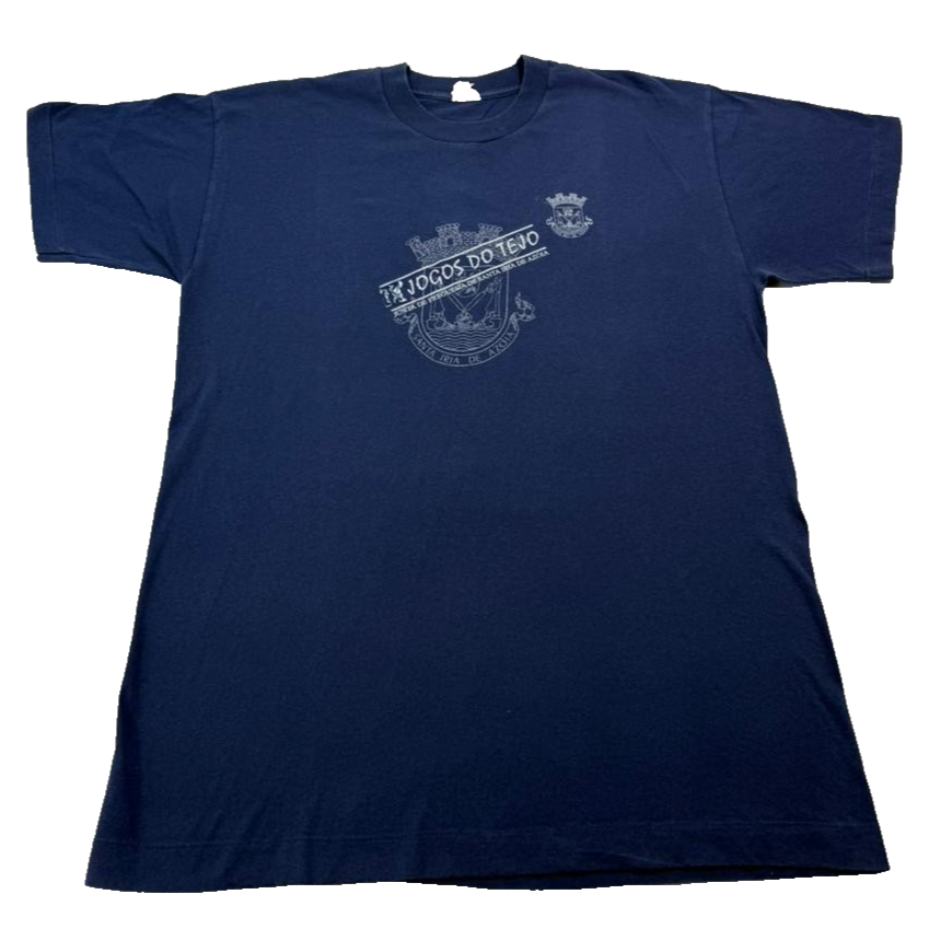 Vtg Unisex Jogos Do Tejo Portuguese T-Shirt Navy Graphic Print Size L