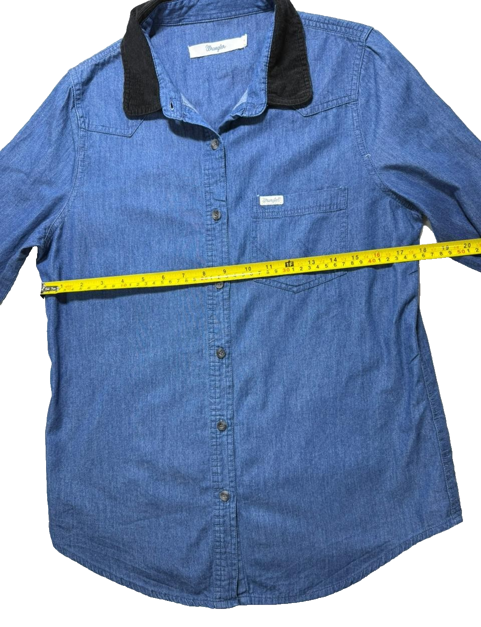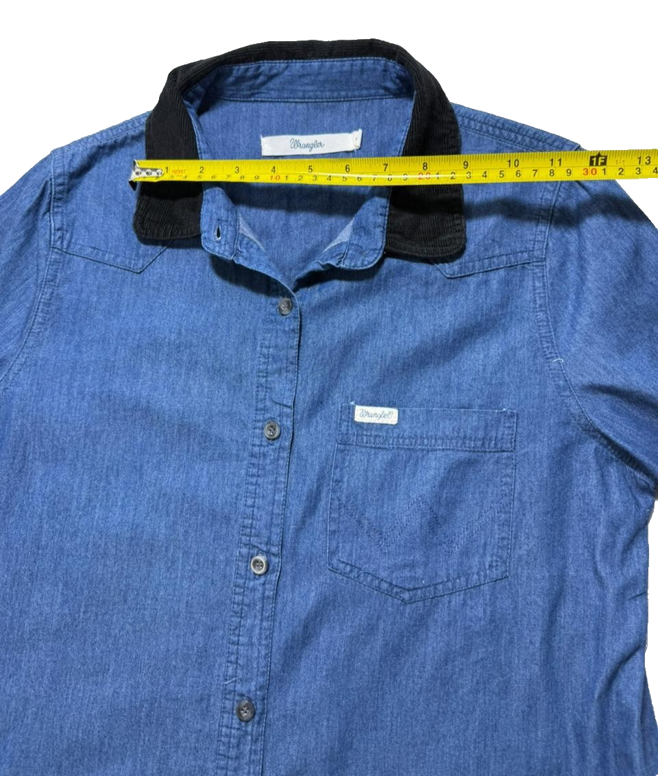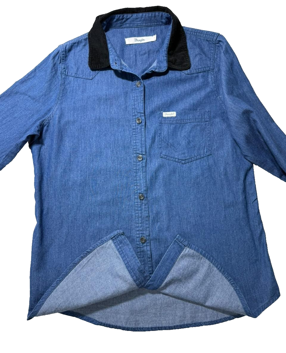 Vtg Wrangler Chambray Color Block Long Sleeve - Size 10