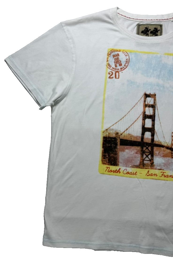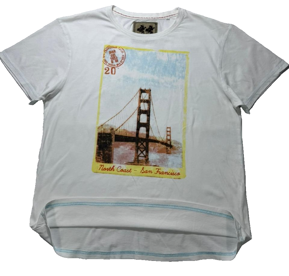 White Graphic T-Shirt Featuring A Print Of The Golden Gate Bridge - Size L