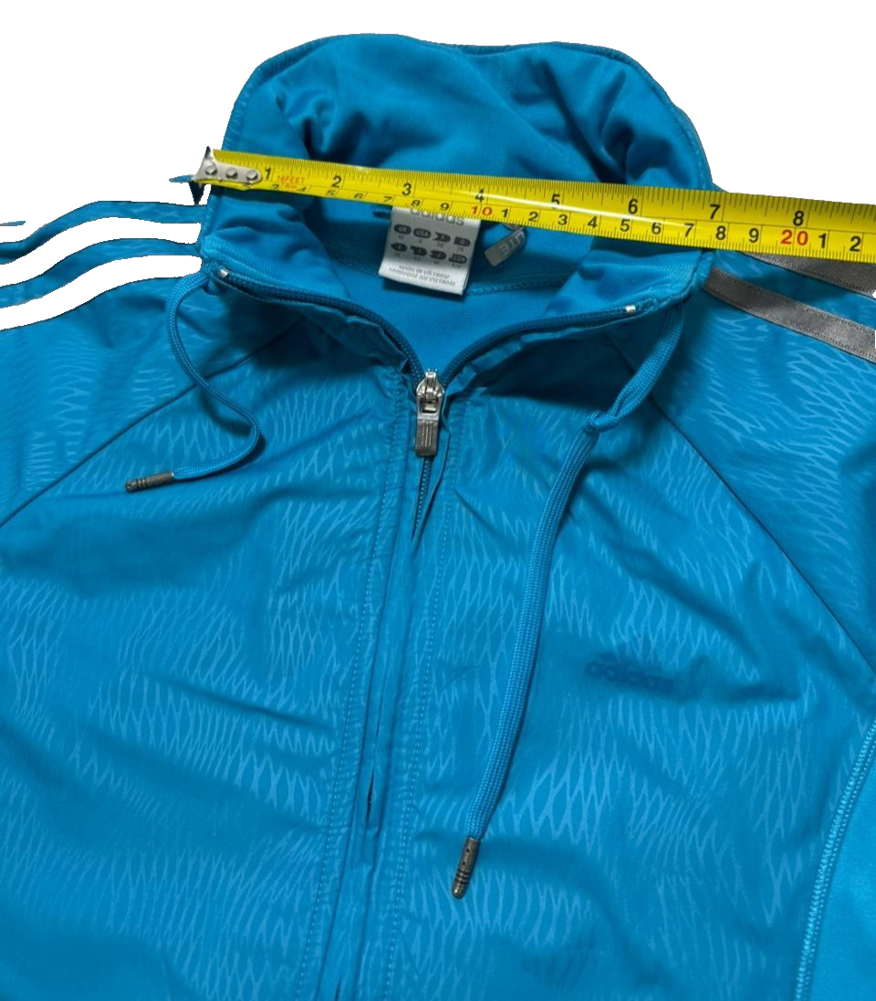 Women's Adidas Teal Blue Gray 3 Stripe Full Zip Track Jacket Activewear Top - S