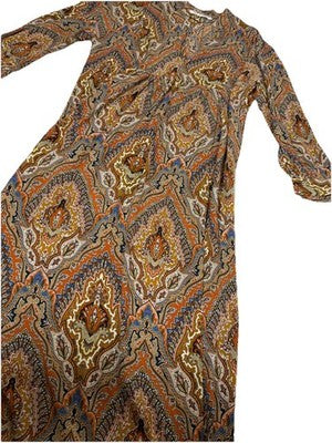 Zara Bohemian Print Ocher Maxi Side Slit Tunic Paisley Dress Usa Xs-S