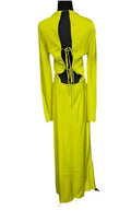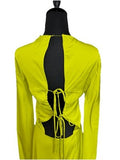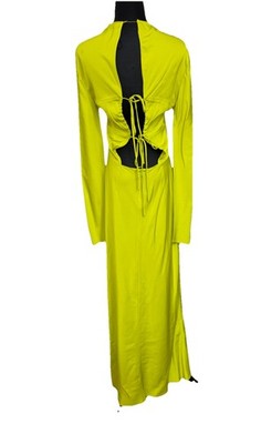 Zara Lime Green Neon Long Sleeve Tie Up Back Satin Dress Size Small