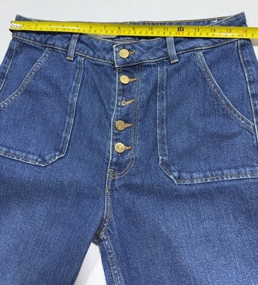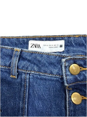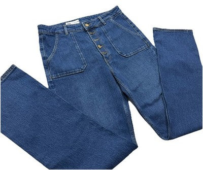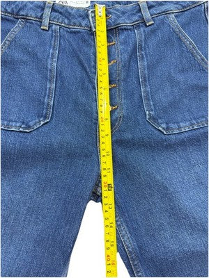 Zara Wide Leg Women Jeans Button Fly High Rise Front Patch Pockets