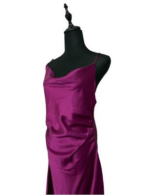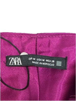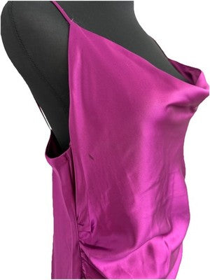 Zara Women�S Midi Dress Medium Purple Satin Effect Ruching Evening